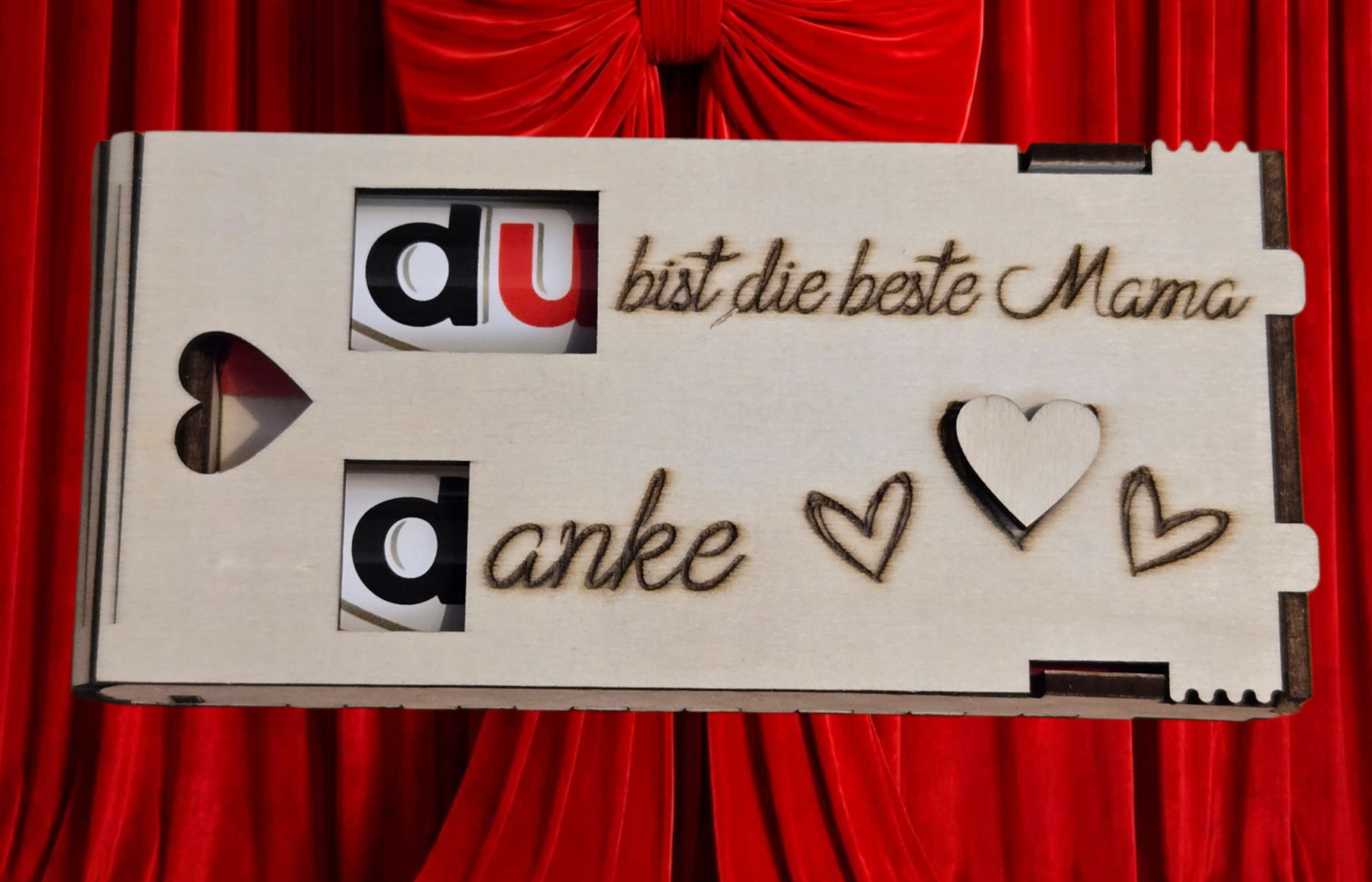 Diese liebevoll gestaltete Holz-Geschenkbox für Duplo-Riegel ist das perfekte kleine Geschenk, um einer besonderen Mama eine große Freude zu machen.