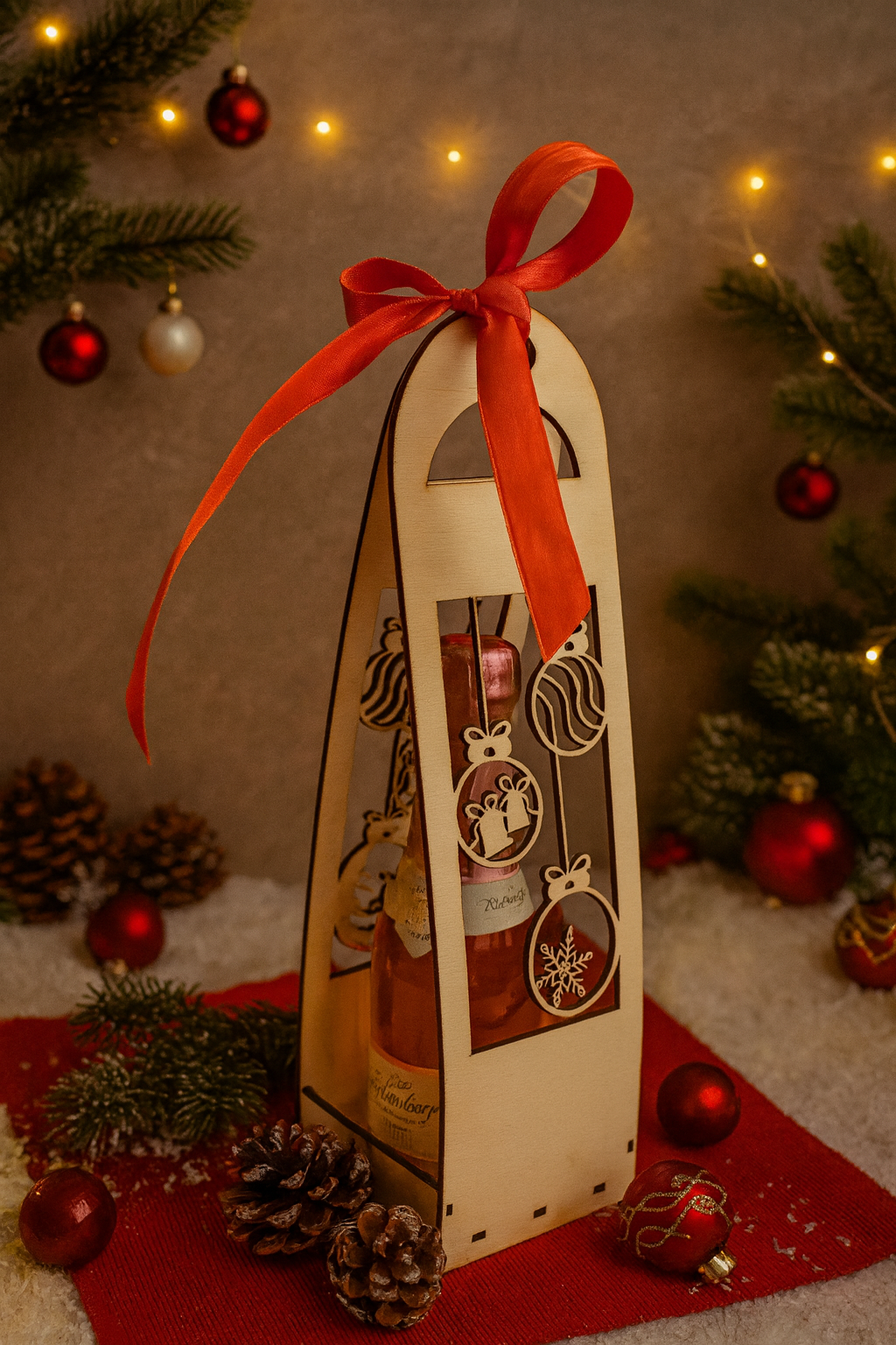Diese elegante Holz-Geschenkbox ist die perfekte Verpackung für kleine Aufmerksamkeiten und eignet sich ideal für 0,2 l Flaschen – ob Sekt, Likör oder Saft. Das edle Design mit fein gelaserten Weihnachtsornamenten verleiht deinem Geschenk eine festliche Note und macht es zu einem echten Hingucker.